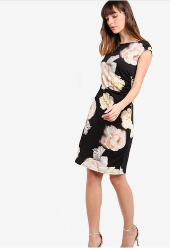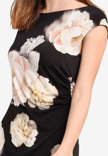 Boosting your confidence from day to night, this dress captures a contemporary appeal through the floral prints in a ruche detail to express your glamorous vibe with a touch of modernity.