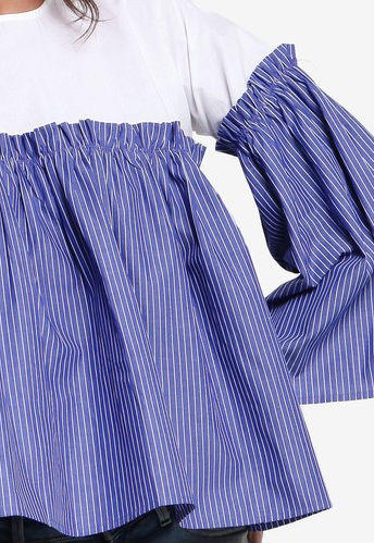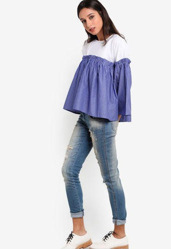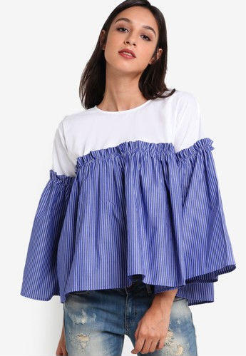 Poplin Stripe Flute Sleeve Top