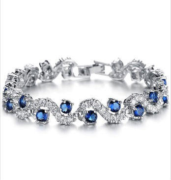 YOUNIQ Diamondate CZ Platinum Plated Silver Bracelet (Blue)